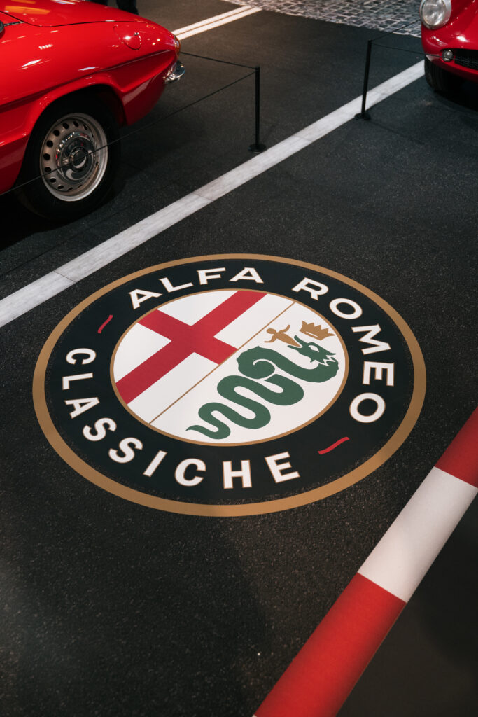 Alfa Romeo expose trois modèles d’une rareté et d’une importance historique majeures, disposés sur des « routes » symboliques évoquant les différents univers de la marque: