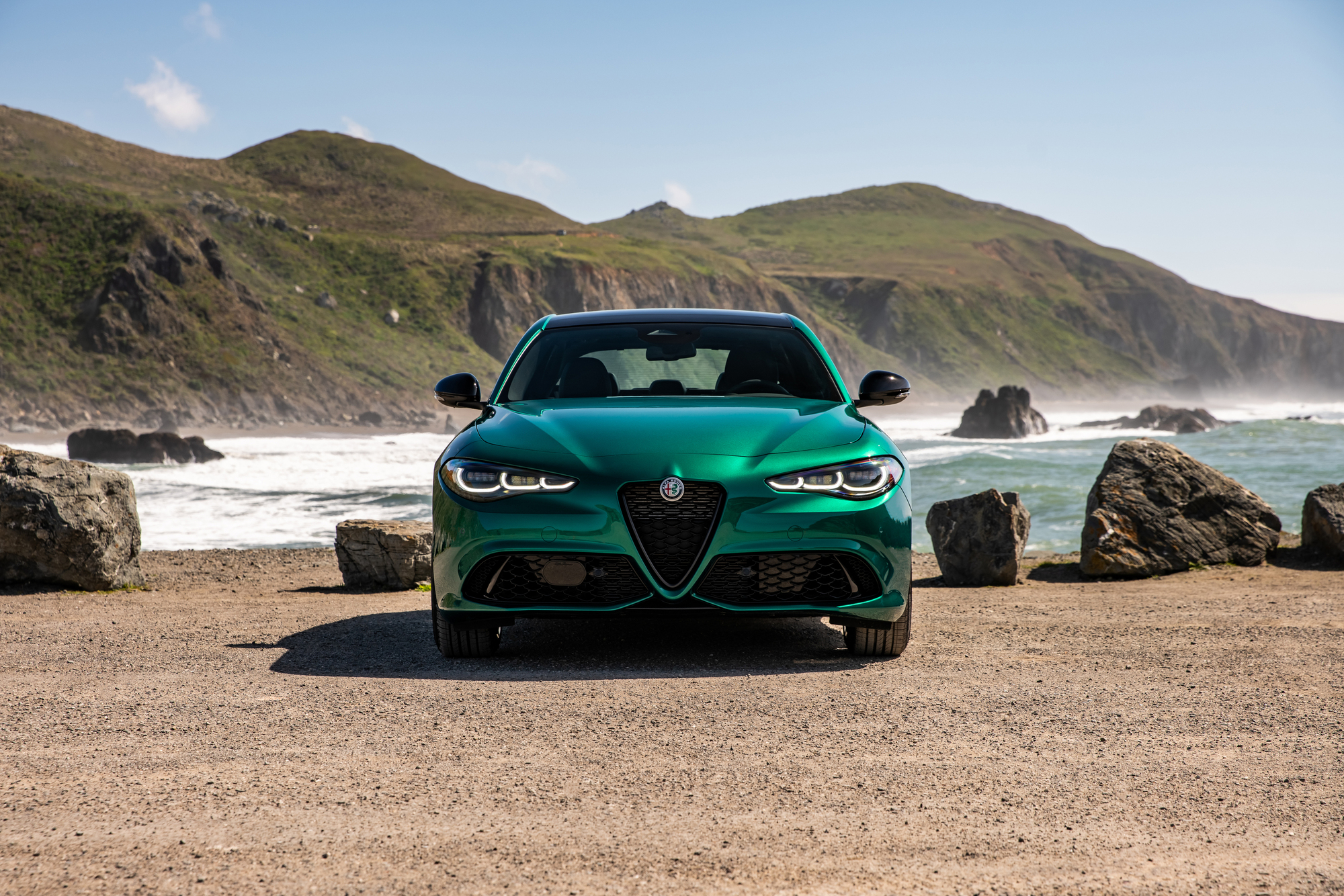 Le résultat ? Les Alfa Romeo Giulia et Stelvio y circulent dans leur forme la plus pure. Sans ce rectangle de métal ou de plastique pour barrer le passage, le design de la plateforme Giorgio prend une tout autre dimension. On redécouvre alors le travail des designers sur les flux d’air et la profondeur de la grille.